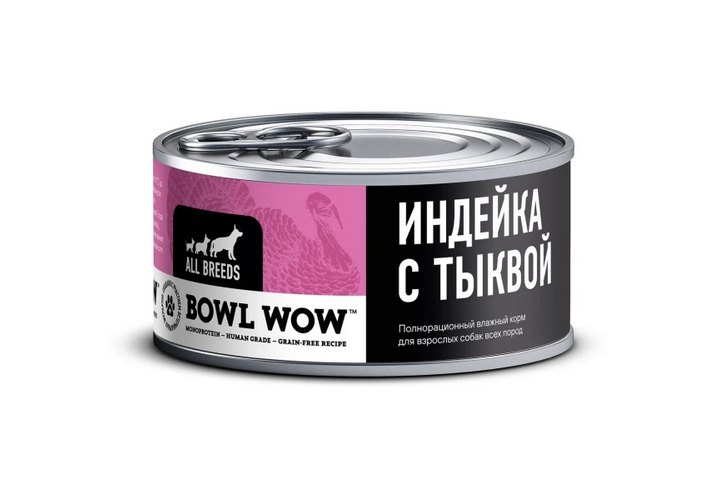 BOWL WOW Влажный корм Боул Вау для собак всех пород Индейка с тыквой (цена за упаковку) 100 г