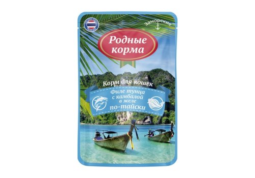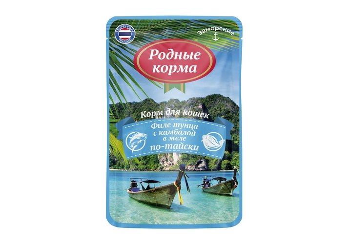 Родные Корма Паучи Заморские для кошек Тунец с камбалой в соусе по-тайски (цена за упаковку) 70г х 16шт