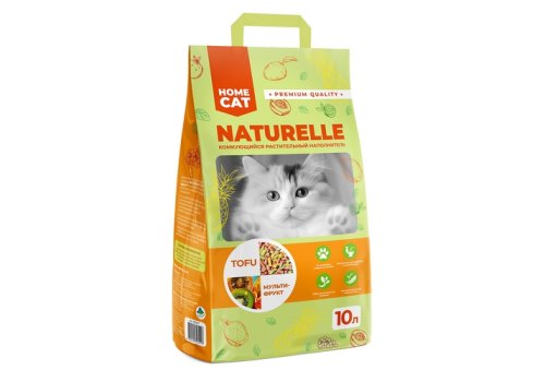 HOMECAT NATURELLE TOFU комкующийся растительный наполнитель с ароматом мультифрукта – это новый, экологичный и безопасный продукт на основе натуральных растительных волокон (тофу) обеспечит комфорт и уют Вашему питомцу, а для Вас наслаждение чистотой и свежестью в доме!