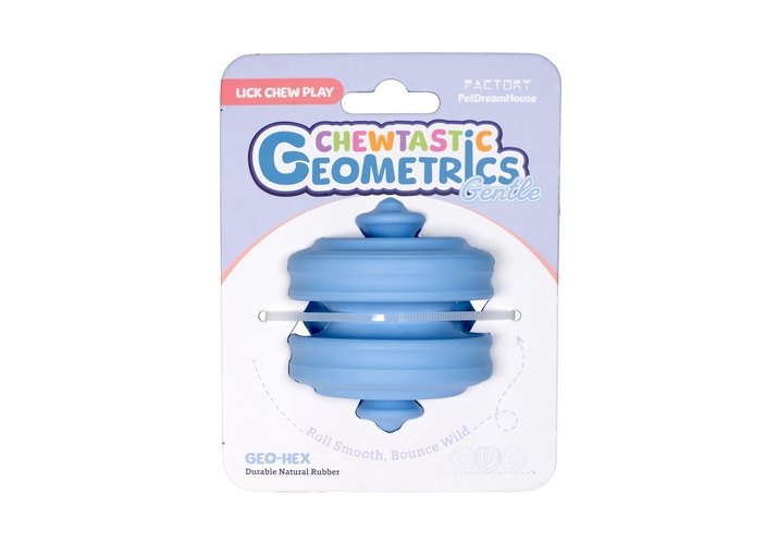 В линейке Chewtastic Geometrics представлены игрушки для собак из прочного натурального каучука в разнообразных геометрических формах. Уникальный дизайн игрушек был разработан в тандеме с бывшим ученым из Национального института аэрокосмической промышленности (Hampton, Virginia), благодаря которому они могут перекатываться во время игры, увлекая внимание питомца, а также отскакивать от пола во время броска. Форма игрушки позволяет прятать внутрь лакомства, либо смазывать её паштетом для собак, чтобы отвлечь питомца от нежелательного поведения (порча мебели и другой домашней утвари от скуки), а также способствует медленному поеданию пищи для улучшения пищеварения.