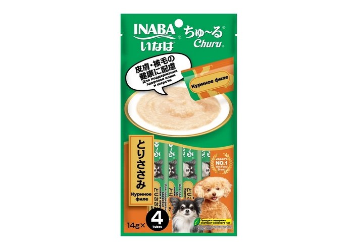 Inaba Ciao Churu Chicken Лакомство-пюре Инаба для собак Куриное филе для здоровья кожи и шерсти 14г х 4шт