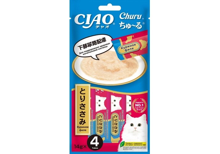 Inaba Ciao Churu Лакомство-пюре Инаба для кошек для поддержания здоровья мочеполовой системы Куриное филе 14г х 4шт