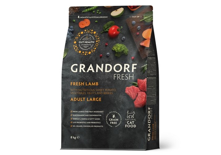 Благодаря беззерновому и безглютеновому составу корма Grandorf FRESH легко усваиваются и отлично подходят для животных с чувствительным пищеварением или пищевой аллергией.