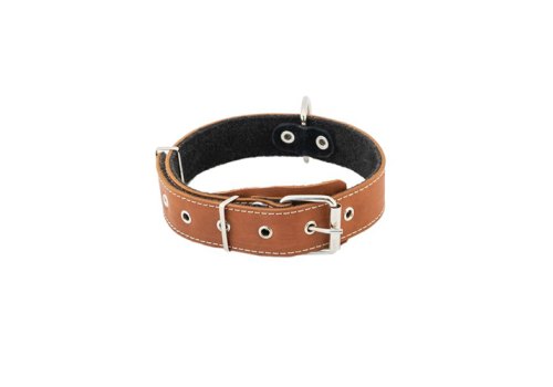 Homepet Ошейник Хоумпет для собак Кожаный с Язычком на фетре простроченный Коричневый 35 мм/45-60 см