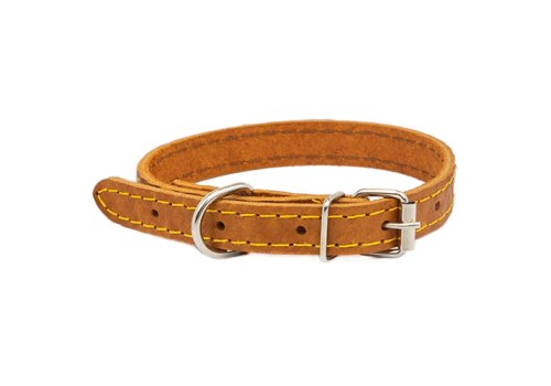 Homepet Ошейник Хоумпет для собак Кожаный Двухслойный простроченный Янтарь 15 мм/17-27 см
