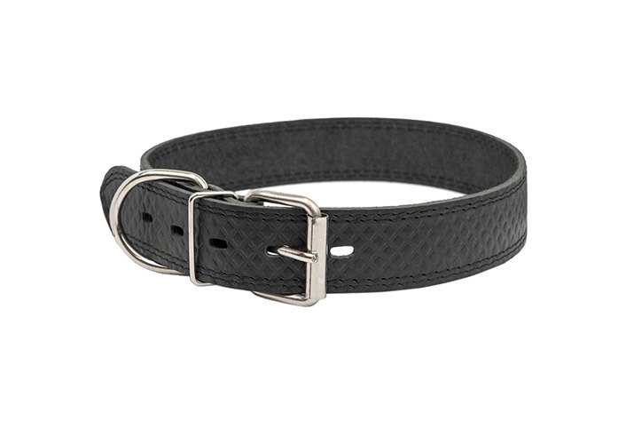 Homepet Ошейник Хоумпет для собак Кожаный простроченный с тиснением Ромбы Черный 35 мм/41-51 см