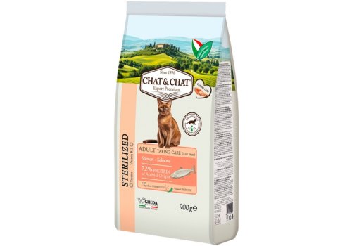 Chat&Chat Adult Sterilized Salmon Сухой корм Чат и Чат для Стерилизованных кошек со вкусом Лосося 900 г