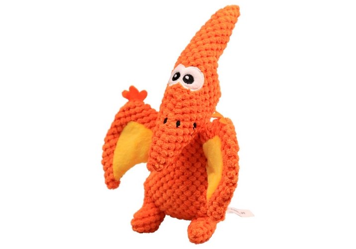 Mr.Kranch Игрушка Мистер Кранч для собак Птерозавр плюшевая с пищалкой оранжевая 23 см
