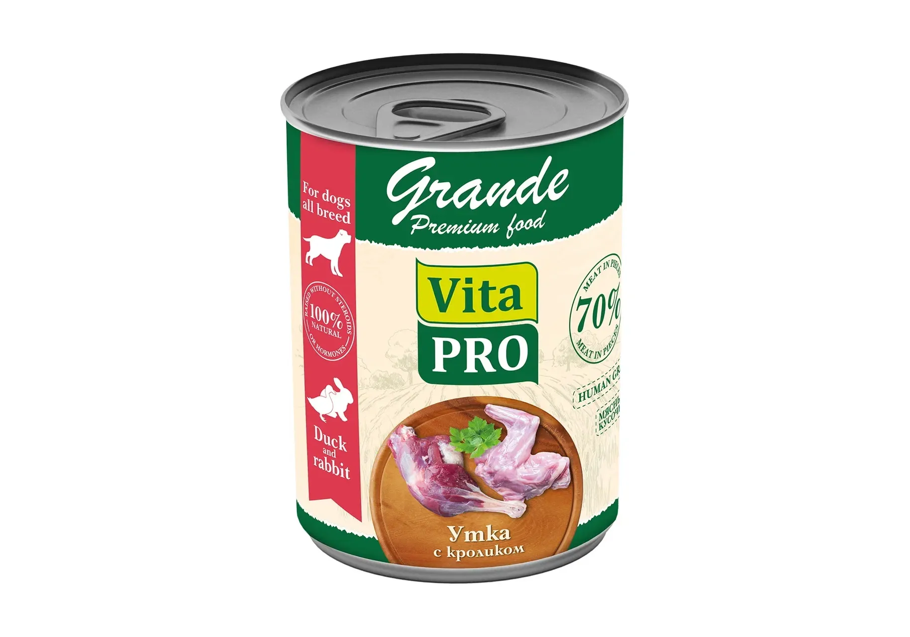 Полнорационный консервированный корм VITA PRO GRANDE для собак из отборных натуральных ингредиентов, произведенный по современным технологиям, обеспечивает питомца необходимой энергией, витаминами и минералами. Не содержит сои, ароматизаторов, искусственных красителей, ГМО.