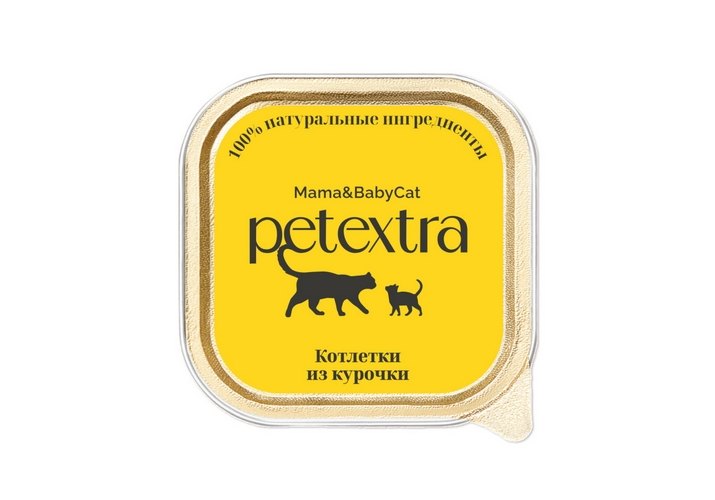 Petextra Mama&BabyCat Влажный корм Петэкстра для котят и беременных кошек Котлетки из курочки (цена за упаковку) 100г х 16шт