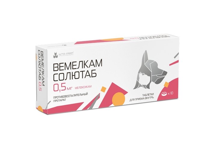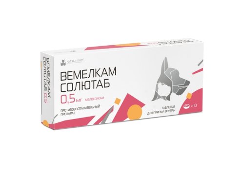 Показания к применению: Вемелкам Солютаб применяют собакам и кошкам в качестве противовоспалительного, жаропонижающего и болеутоляющего средства при воспалительных и болевых синдромах различного происхождения, включая острые и хронические заболевания опорно-двигательного аппарата (артриты, артрозы, синовиты, вывихи), воспалительные заболевания мягких тканей, а также в послеоперационный период.
