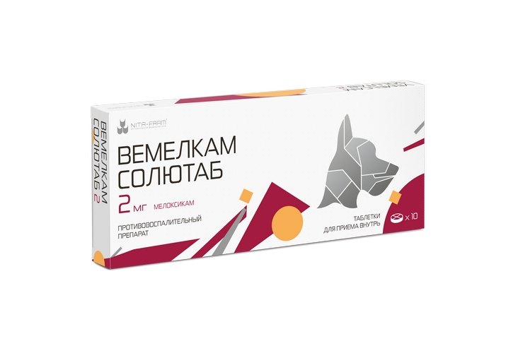 Показания к применению: Вемелкам Солютаб применяют собакам и кошкам в качестве противовоспалительного, жаропонижающего и болеутоляющего средства при воспалительных и болевых синдромах различного происхождения, включая острые и хронические заболевания опорно-двигательного аппарата (артриты, артрозы, синовиты, вывихи), воспалительные заболевания мягких тканей, а также в послеоперационный период.
