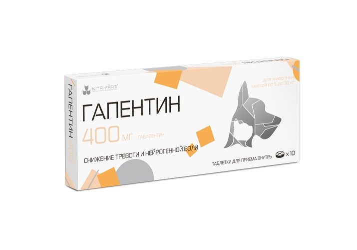 Гапентин Препарат для коррекции поведенческих реакций у кошек и собак весом 5-30кг 400мг 10табл