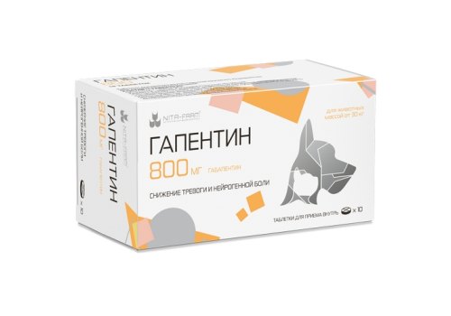 Гапентин Препарат для коррекции поведенческих реакций у кошек и собак весом от 30кг 800мг 10табл