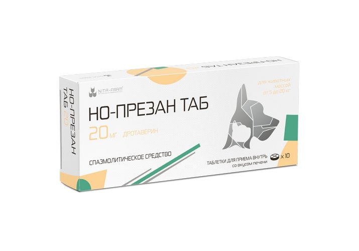 Но-презан Спазмолитическое средство для кошек и собак весом 5-20кг 20мг 10табл