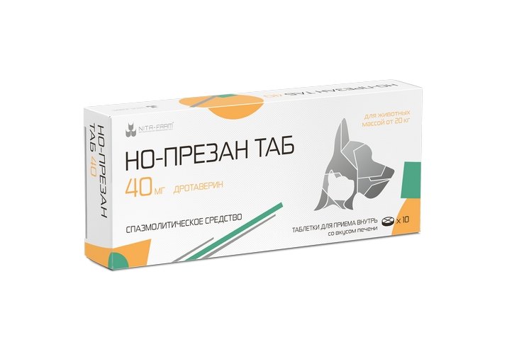 Но-презан Спазмолитическое средство для кошек и собак весом от 20кг 40мг 10табл