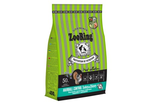 Zooring Adult Cat Hairball Control Turkey&Chicory Сухой корм Зооринг для контроля волосяных комочков Индейка с цикорием 400 г
