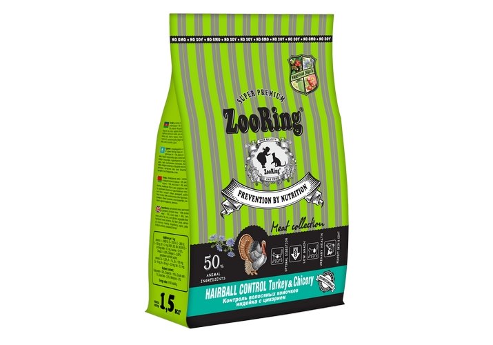 Zooring Adult Cat Hairball Control Turkey&Chicory Сухой корм Зооринг для контроля волосяных комочков Индейка с цикорием 1, 5 кг