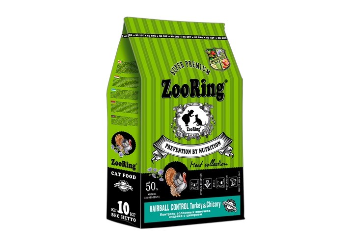 Zooring Adult Cat Hairball Control Turkey&Chicory Сухой корм Зооринг для контроля волосяных комочков Индейка с цикорием 10 кг
