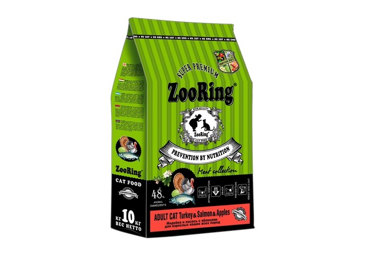 Zooring Adult Cat Turкey&Salmon&Apples Сухой корм Зооринг для взрослых кошек Индейка Лосось с яблоком 10 кг