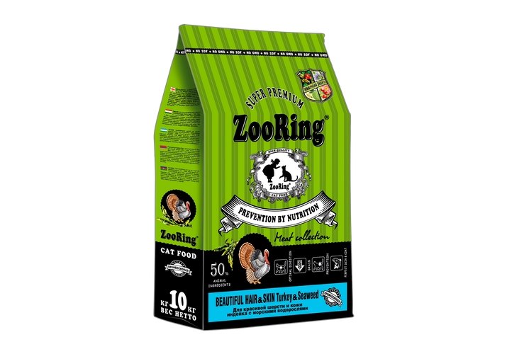Zooring Beautiful Hair&Skin Turkey&Seaweed Сухой корм Зооринг для красивой шерсти и кожи Индейка с морскими водорослями 10 кг