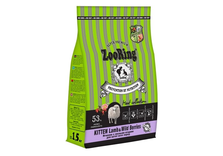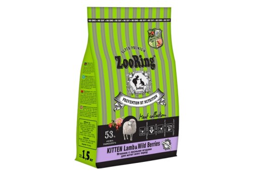 Zooring Kitten Lamb&Wild Berries Сухой корм Зооринг для котят всех пород Ягненок с лесными ягодами 1, 5 кг