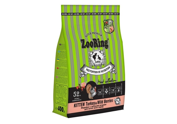 Zooring Kitten Turkey&Wild Berries Сухой корм Зооринг для котят всех пород Индейка с лесными ягодами 400 г