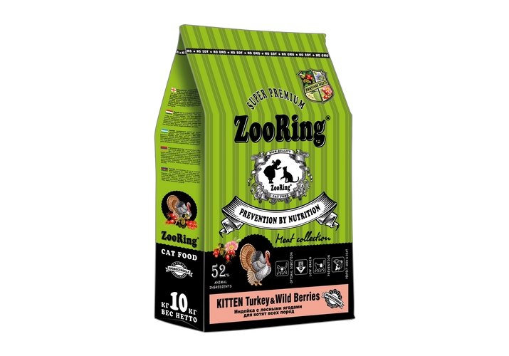Zooring Kitten Turkey&Wild Berries Сухой корм Зооринг для котят всех пород Индейка с лесными ягодами 10 кг