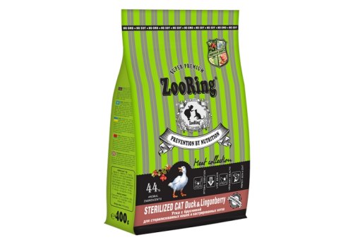 Zooring Sterilized Cat Duck&Lingonberry Сухой корм Зооринг для стерилизованных кошек Утка с брусникой 400 г