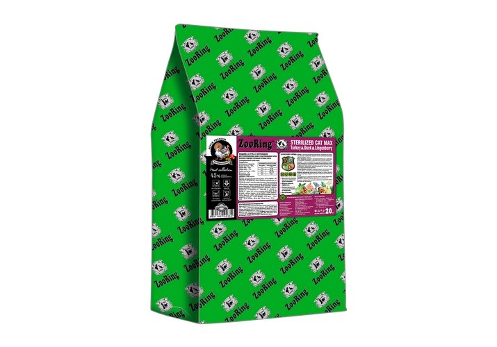 Zooring Sterilized Cat Max Turkey&Duck&Lingonberry Сухой корм Зооринг для стерилизованных кошек Крупных пород Индейка Утка с брусникой 20 кг