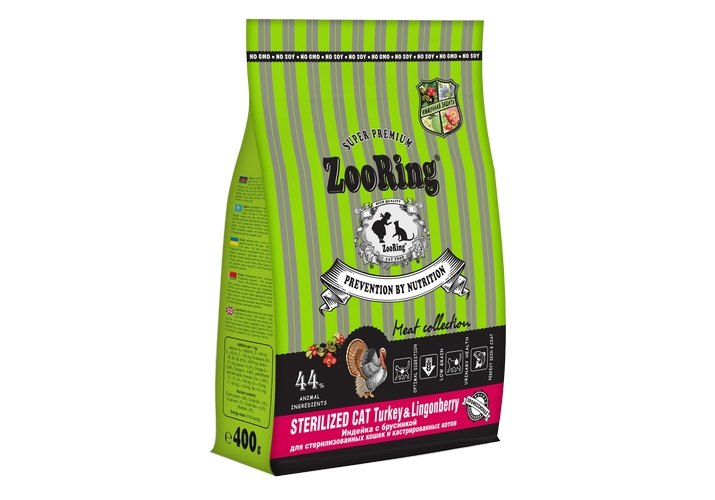 Zooring Sterilized Cat Turkey&Lingonberry Сухой корм Зооринг для стерилизованных кошек Индейка с брусникой 400 г