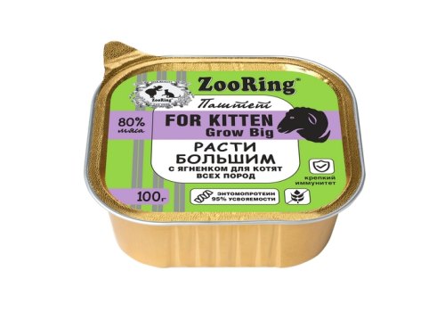 ZooRing For Kitten Grow Big Паштет Зооринг для котят Расти большим с ягненком (цена за упаковку) 100 г х 16 шт