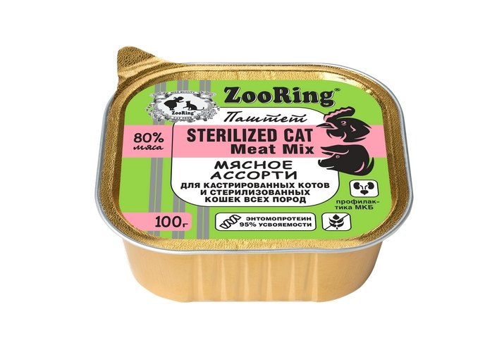 Zooring Sterilized Cat Meat Mix Паштет Зооринг для стерилизованных кошек Мясное ассорти (цена за упаковку) 100 г х 16 шт