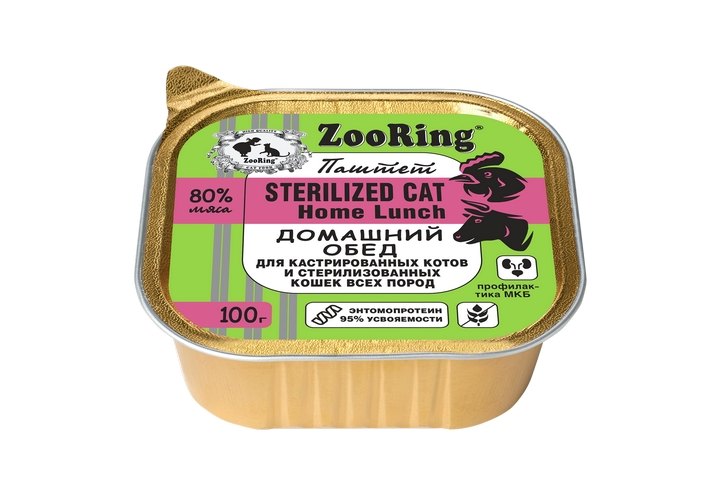 Zooring Sterilized Cat Home Lunch Паштет Зооринг для стерилизованных кошек Домашний обед (цена за упаковку) 100 г х 16 шт