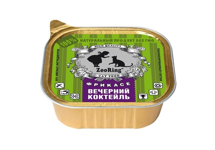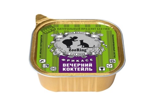 Zooring Паштет Зооринг для кошек Фрикасе Вечерний коктейль (цена за упаковку) 100 г х 16 шт