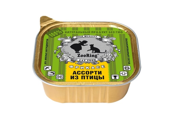 Zooring Паштет Зооринг для кошек Фрикасе Ассорти из птицы (цена за упаковку) 100 г х 16 шт