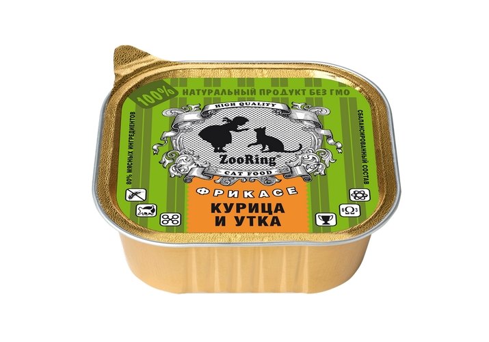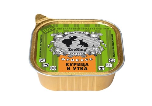 Zooring Паштет Зооринг для кошек Фрикасе Курица и утка (цена за упаковку) 100 г х 16 шт