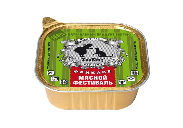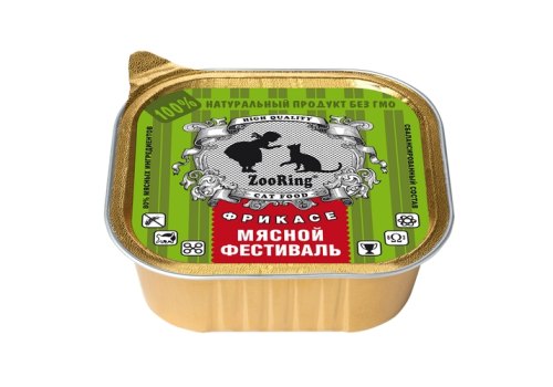 Zooring Паштет Зооринг для кошек Фрикасе Мясной фестиваль (цена за упаковку) 100 г х 16 шт