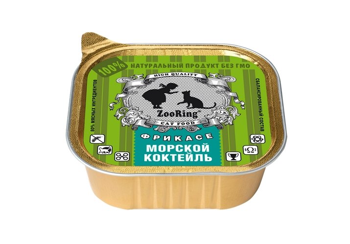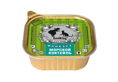 Zooring Паштет Зооринг для кошек Фрикасе Морской коктейль (цена за упаковку) 100 г х 16 шт