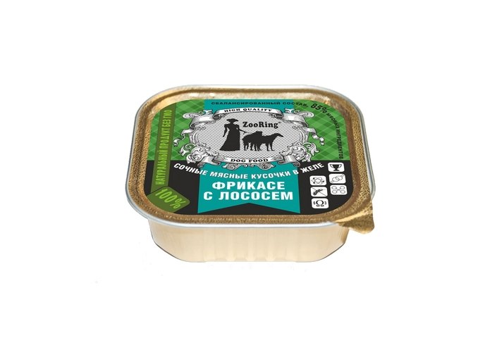 ZooRing Консервы Зооринг для собак кусочки в желе Фрикасе с Лососем (цена за упаковку) 100 г х 16 шт