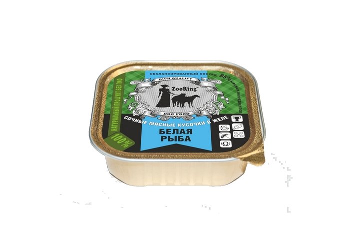 ZooRing Консервы Зооринг для собак кусочки в желе Белая рыба (цена за упаковку) 100 г х 16 шт