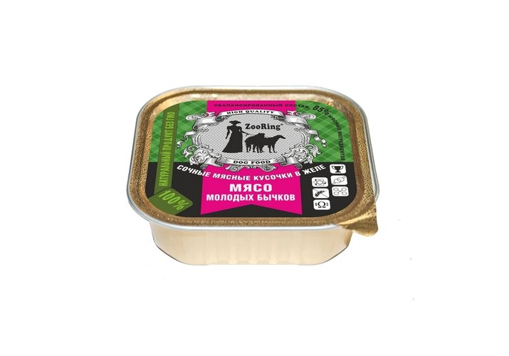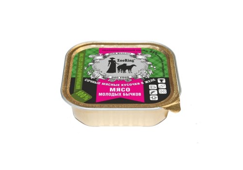 ZooRing Консервы Зооринг для собак кусочки в желе Мясо молодых бычков (цена за упаковку) 100 г х 16 шт