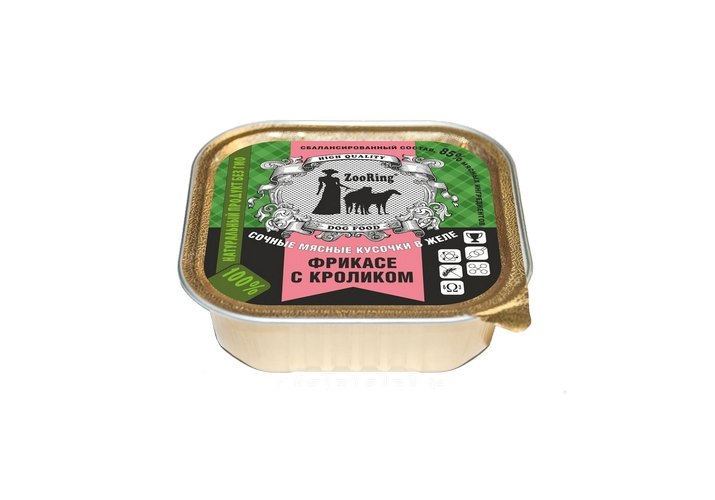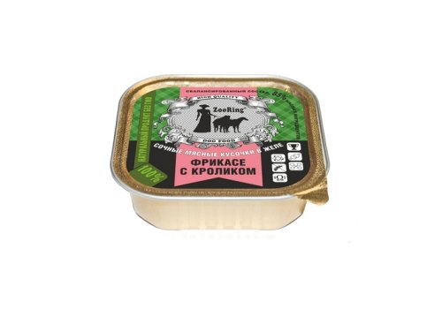 ZooRing Консервы Зооринг для собак кусочки в желе Фрикасе с кроликом (цена за упаковку) 100 г х 16 шт