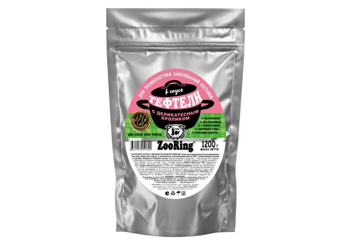 ZooRing Консервы Зооринг для собак с коллагеном Тефтели в соусе с деликатесным Кроликом (цена за упаковку) 1200 г х 4 шт