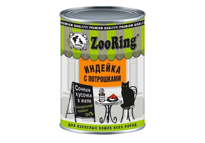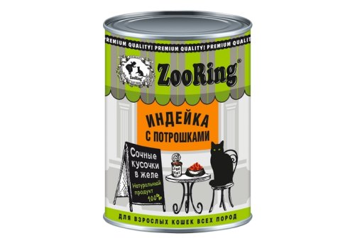 Zooring Консервы Зооринг для взрослых кошек кусочки в желе Индейка с Потрошками (цена за упаковку) 400 г х 12 шт