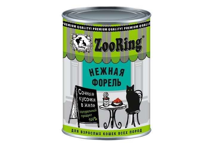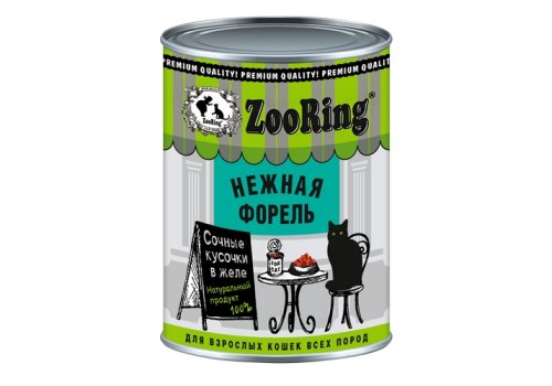 Zooring Консервы Зооринг для взрослых кошек кусочки в желе с Форелью (цена за упаковку) 400 г х 12 шт