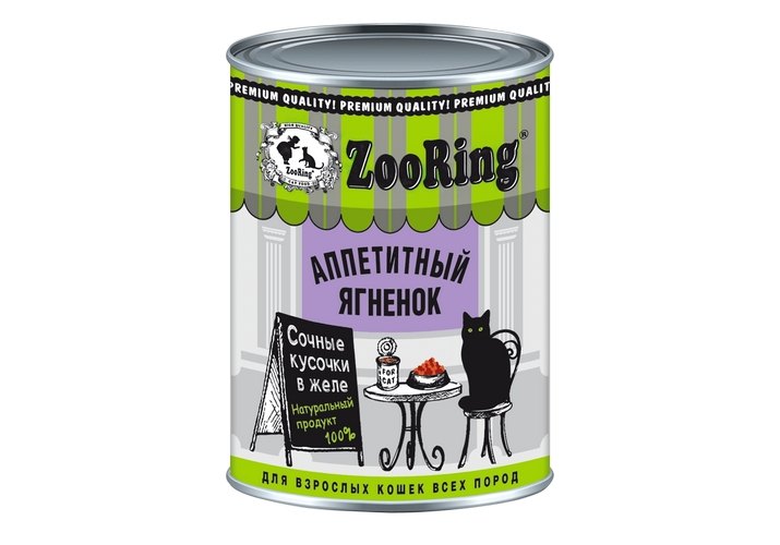 Zooring Консервы Зооринг для взрослых кошек кусочки в желе Кролик с Ягненком (цена за упаковку) 400 г х 12 шт