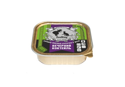 Zooring Консервы Зооринг для кошек кусочки в желе Вечерний коктейль (цена за упаковку) 100 г х 16 шт
