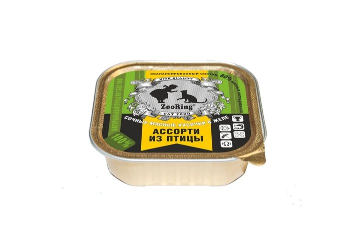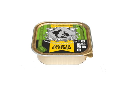 Zooring Консервы Зооринг для кошек кусочки в желе Ассорти из птицы (цена за упаковку) 100 г х 16 шт