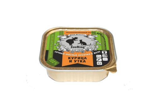 Zooring Консервы Зооринг для кошек кусочки в желе Курица и утка (цена за упаковку) 100 г х 16 шт